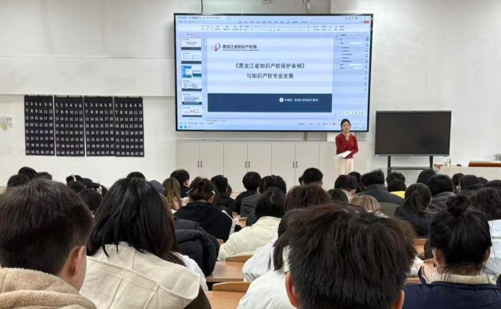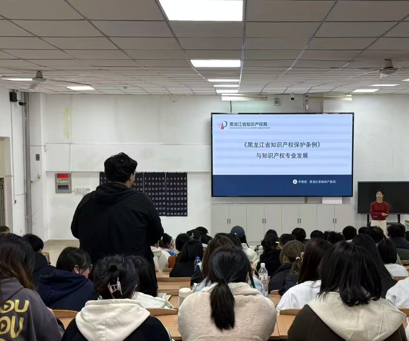 为深化知识产权实务型人才培养,将地方立法实践与教学研究紧密结合,10月30日法学院以《黑龙江省知识产权保护条例》(以下简称《条例》)实施为核心抓手,特邀黑龙江省知识产权局政策法规处三级主任科员李奥滢开展专题讲座,为知识产权专业师生带来一场兼具政策深度与实践价值的知识分享,讲座由知识产权专业负责人沈赏老师主持。