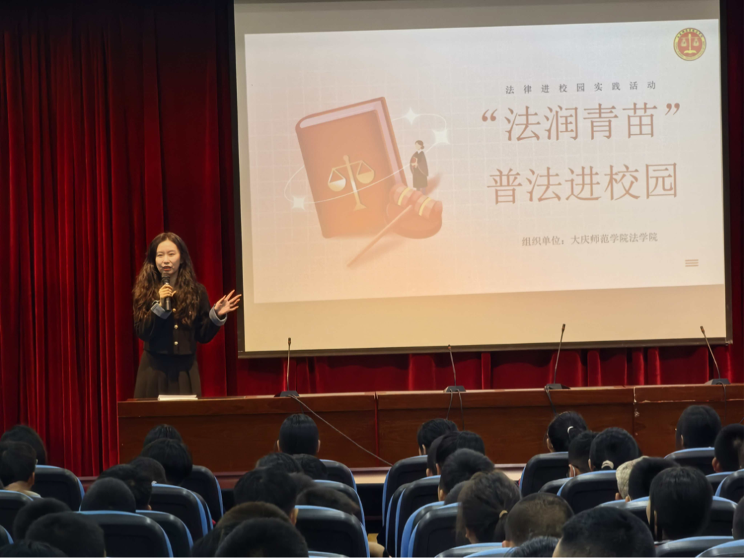 为响应法治国家的方针政策,推进法治校园建设、校园普法常态化,大庆市大学生普法志愿联盟大庆师范学院分部院联同大庆市司法局积极响应国家政策,2025年10月11日走进了嘉城学校,开展了以“法润青苗”为主题的实践活动,体现了对“三下乡”品牌的拓展和延伸。此次活动由大庆师范学院法学院团委书记杨郁婷带领大庆师范学院法学院学生共同走进校园开展“普法进校园”法治宣讲活动。本次实践不仅是“法润青苗”品牌的延伸与拓展,且标志着校地交流进入了持续常态化阶段。
