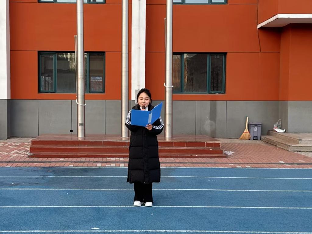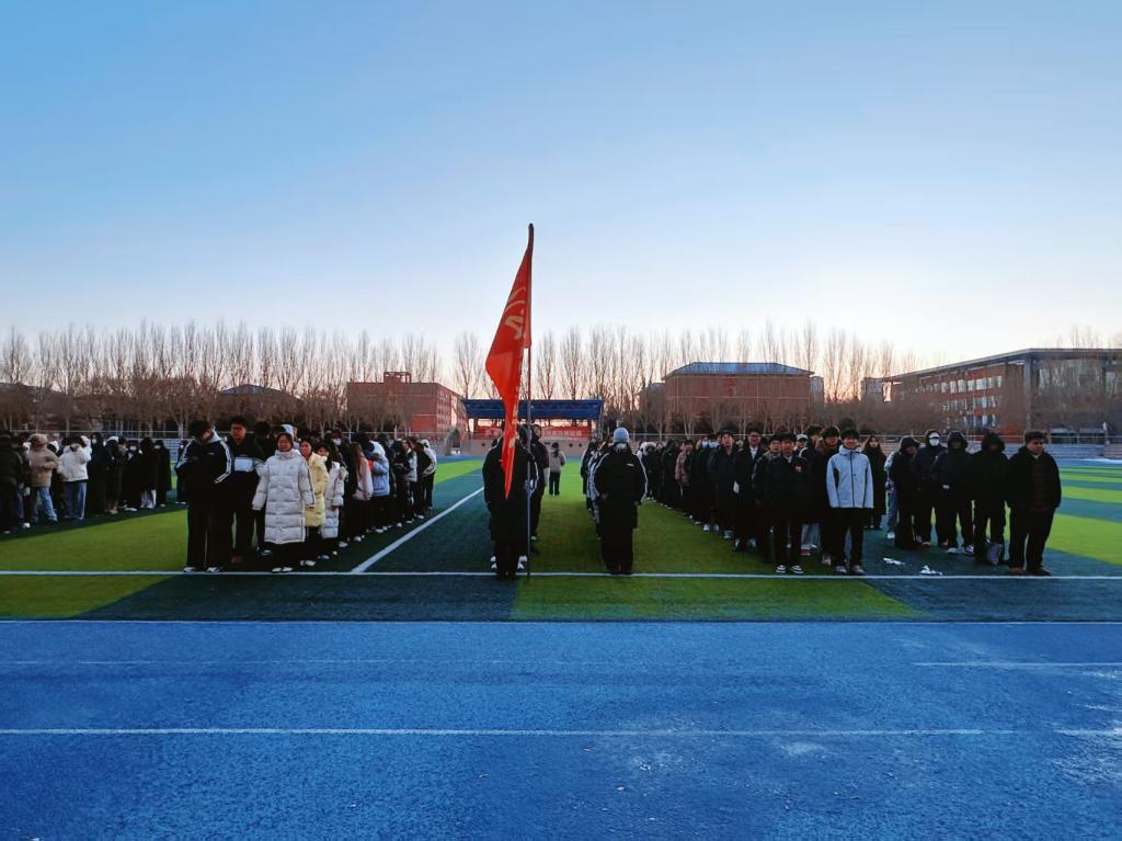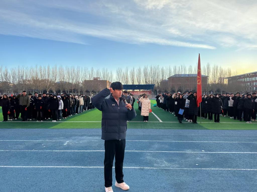 晨光微熹,国旗护卫队步伐铿锵,护送五星红旗庄严入场。在雄壮激昂的国歌声中,全体师生肃立行注目礼,注视着国旗冉冉升起。升旗仪式后,学生代表姚佳琪登台发言,她结合铁人王进喜的感人事迹与法学专业特点,向全体同学发出号召:“将铁人的坚韧奋斗,融入法治的严谨细致。”随后,在王洪博同学的带领下,全体学生高举右拳,庄严宣誓。铿锵有力的誓言回荡在体育场上空,彰显了同学们砥砺意志、刻苦学习、奉献法治事业的坚定决心。