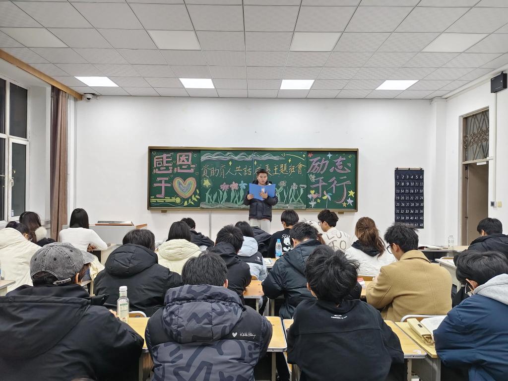 为深化资助育人成效,引导受助学生心怀感恩、励志奋进,法学院于11月23日组织2025级各班分别在主楼210、214、224教室开展“感恩于心,励志于行——资助育人共话成长”主题班会。