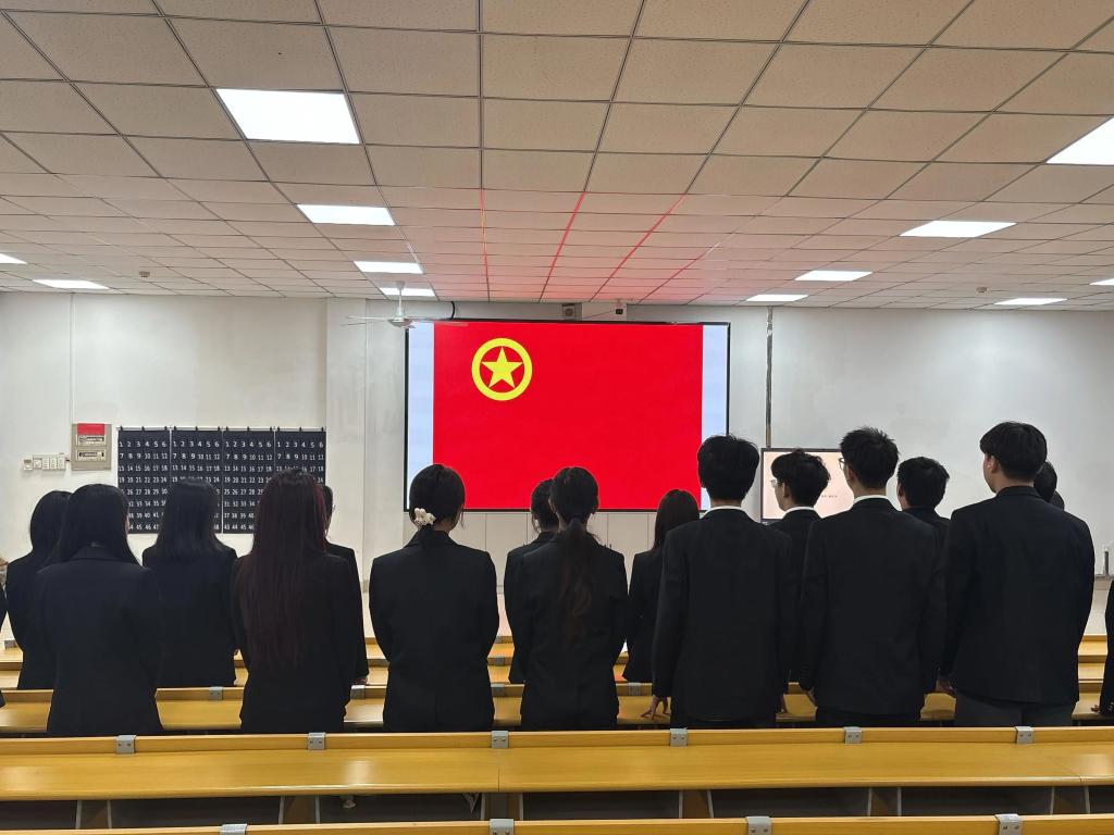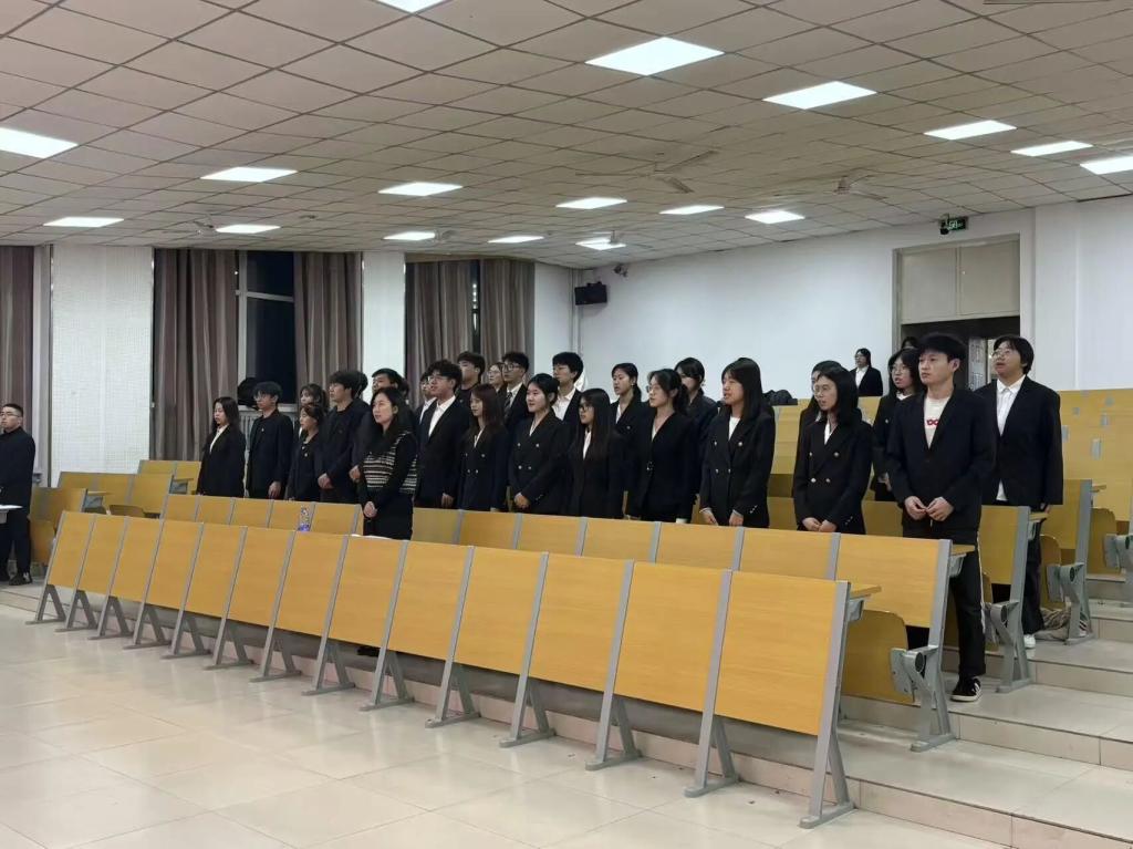 仪式伊始,全场起立奏唱国歌,全体人员神情庄重,在激昂的旋律中凝聚信念。随后,杨郁婷老师宣读了新团员名单与接收决定,现场掌声雷动,向新加入的青年伙伴送上祝贺。