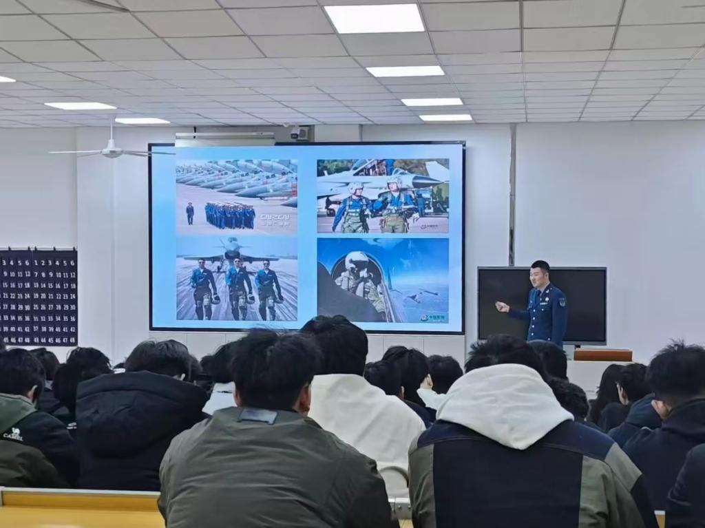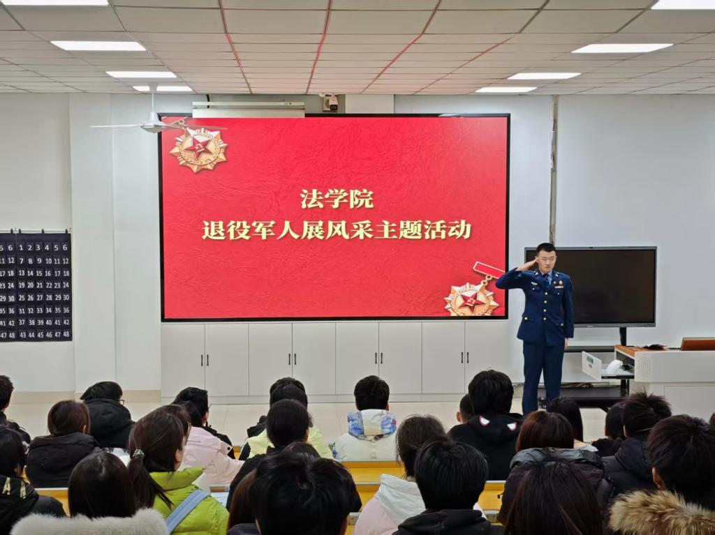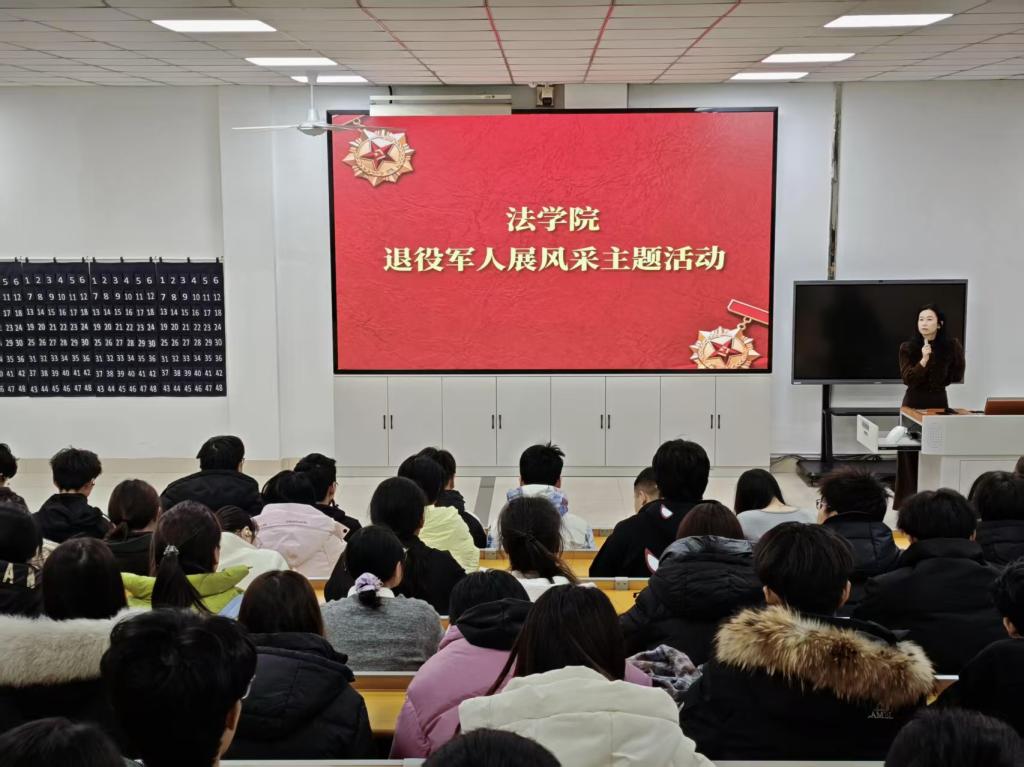 为扎实推进国防教育进校园,厚植青年学生家国情怀与责任担当,进一步激发大学生参军报国热情,法学院在主楼2-2教室举办"退役军人展风采"主题活动。团委书记杨郁婷出席活动,2025级全体学生齐聚现场,在青春与迷彩的碰撞中,感悟"退役不褪色、建功新时代"的精神内核,凝聚强军报国的青春力量。
