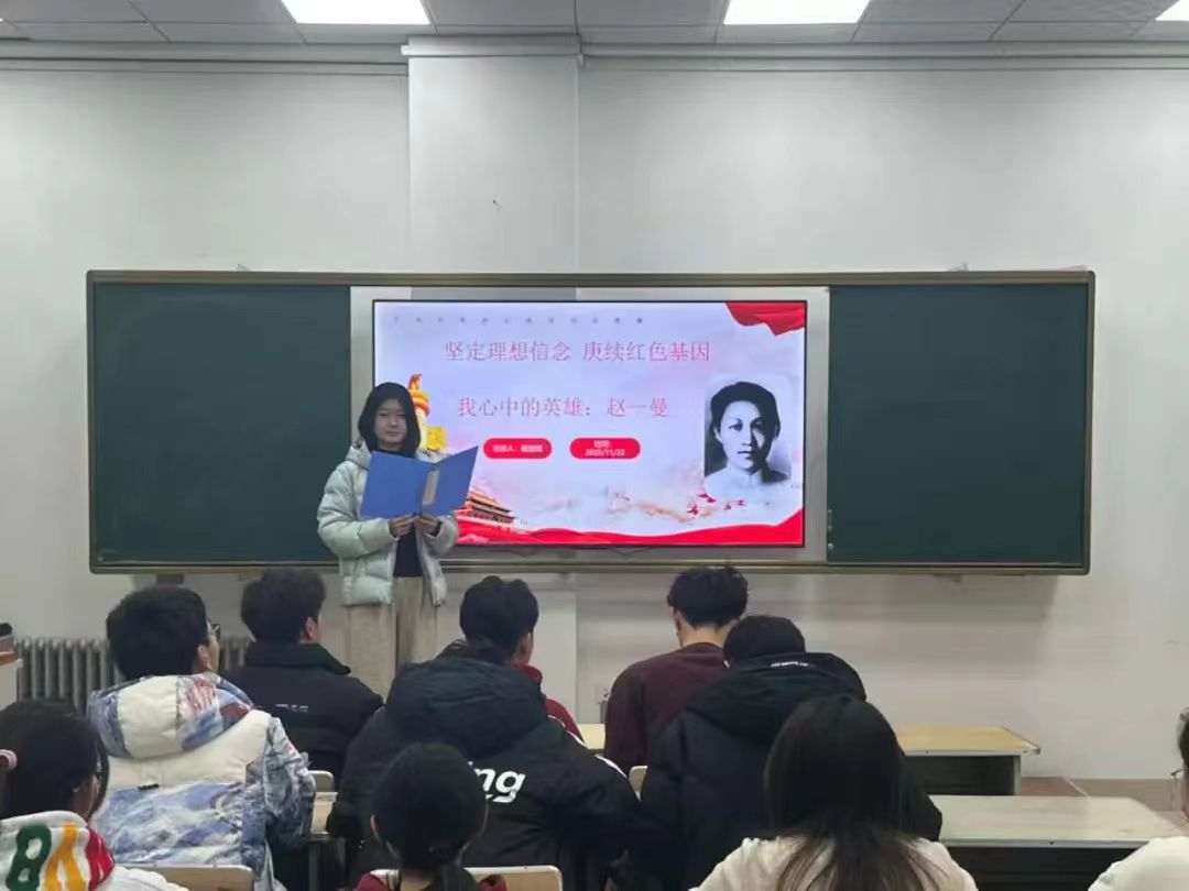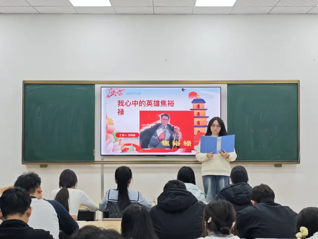 在“我心中的英雄”主题故事分享会上,同学们走上讲台,动情地讲述了自己心中英雄的故事。从面对敌人侧刀毫无畏惧、以年仅15岁的生命铸就“生的伟大,死的光荣”不朽丰碑的刘胡兰,到身陷日寇魔掌、受尽酷刑仍高唱《红旗歌》英勇就义的抗日英雄赵一曼;从身患重疾仍扎根兰考、带领群众与内涝、风沙、盐碱“三害”顽强斗争直至生命最后一刻的县委书记榜样焦裕禄,到在冰天雪地、弹尽粮绝的极端环境下,只身与敌周旋、战斗至最后一息的东北抗日联军主要创建者和领导人杨靖宇……一个个基于史实的生动讲述,让英雄的形象愈发真切而伟岸。这场分享会不仅是一次故事的分享,更是一次跨越时空的精神对话,让同学们深刻领悟到英雄们坚定的理想信念与视死如归的献身精神,并立志将这份精神血脉融入未来的法治事业中。