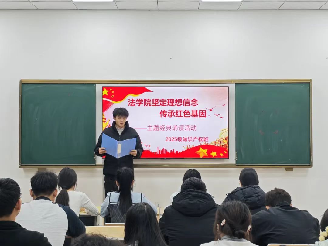 理想信念是精神之柱,红色基因是力量之源。为筑牢青年信仰根基、传承红色革命精神,激励学子笃行法治初心,法学院组织2025级各班同学开展“坚定理想信念 传承红色基因”主题教育系列活动,旨在将红色种子播撒在青年学子心田,让理想信念的光芒照亮其法治追求的道路。