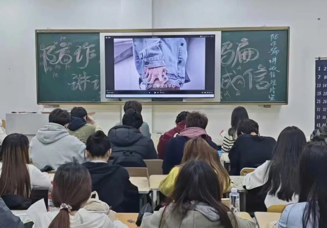 主题短片围绕反诈技巧、刷单诈骗危害、“校园贷”“套路贷”防范等重点内容,结合真实诈骗案例,生动揭露了各类诈骗的套路陷阱及严重危害。观看过程中,同学们认真聆听、深入思考,进一步筑牢反诈思想防线,摒弃贪图小利的侥幸心理,注意交友边界,树立诚实守信、自立自强的理念。活动结束后,同学们纷纷表示收获颇丰,将牢记短片中的警示案例,坚决远离诈骗陷阱和非法借贷,坚守诚信底线、树立自强信念,把感恩之心转化为勤学笃行的学习动力,以实际行动回报社会。
