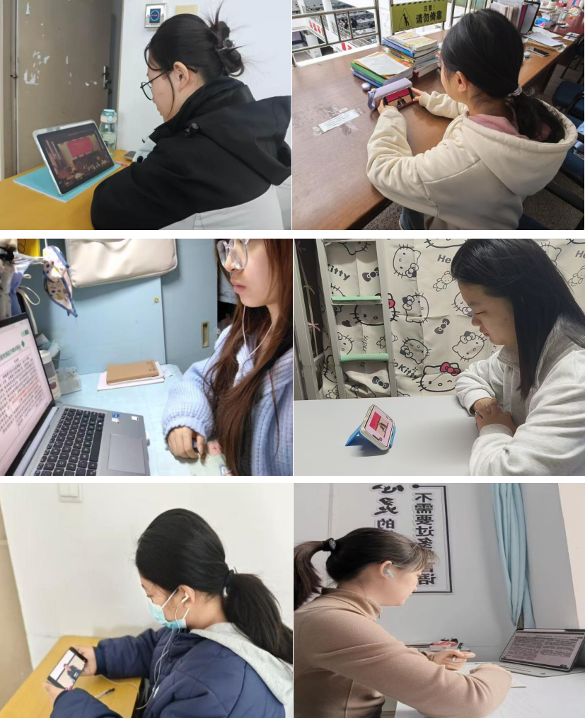 法学院结合师生实际情况,采用了灵活多样的组织方式。各年级学生根据自身课程安排与学习习惯,在宿舍、图书馆、自习室等不同场所,以个人或小组形式接入线上直播,实现了学习活动的全面覆盖。同学们一边听课一边记录要点,不少学生在课后第一时间提交了学习心得。
