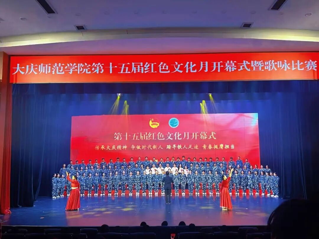 2025年9月24日晚,大庆师范学院第十五届红色文化月开幕式暨歌咏比赛在大学生活动中心顺利举办。法学院百余名师生组成合唱队伍积极参与,以嘹亮歌声传递红色情怀,展现全院师生的昂扬姿态。