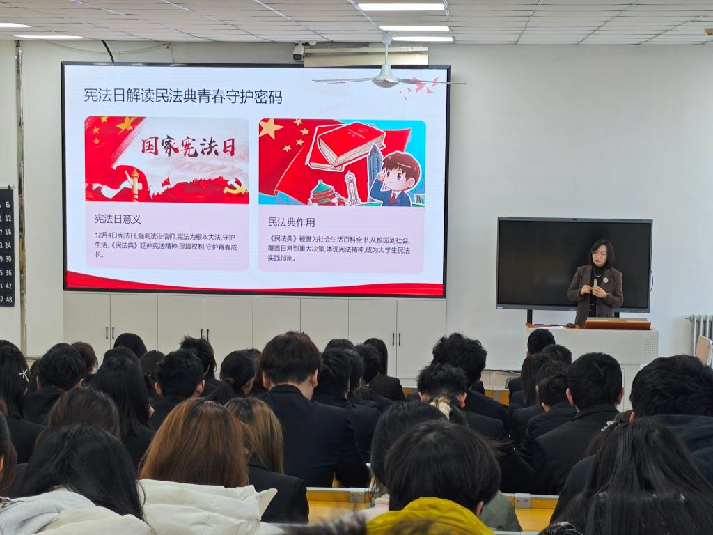 12月4日上午,法学院于主楼2-1教室顺利开展“以宪法精神解锁《民法典》青春守护密码”普法讲座。本次活动由黑龙江省法学会、大庆市法学会、大庆市司法局联合主办,大庆师范学院法学院承办。本次讲座特邀黑龙江典通律师事务所副主任、高级合伙人张玲玲律师担任主讲人,并邀请全校各院系、各年级同学代表参加,旨在面向大学生群体开展精准、鲜活的法治宣传教育,提升青年学生的法律意识和自我保护能力。